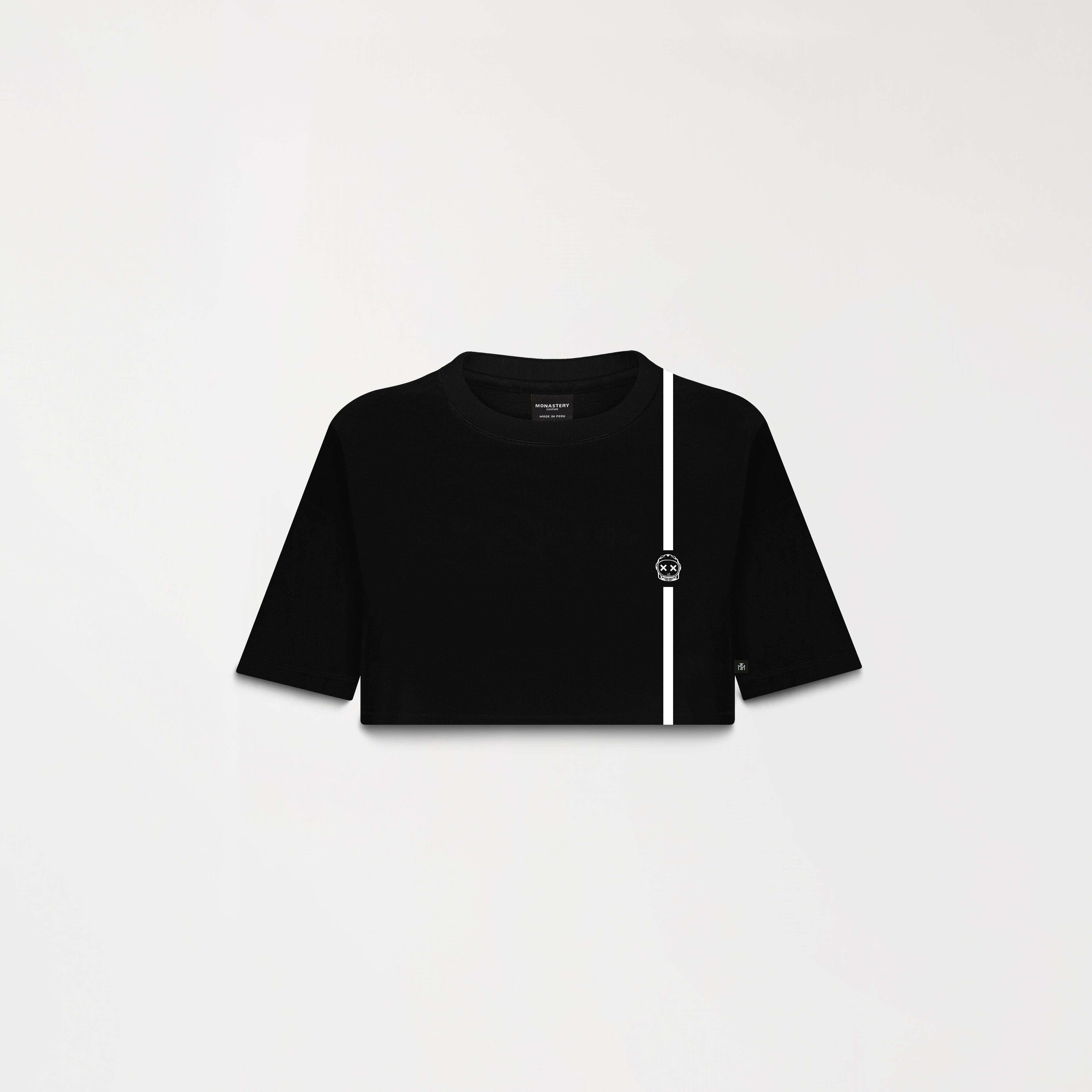 El crop top Seiko está diseñada con un corte moderno. En la parte frontal, presenta los logos Monastery y Phillip estampados en plastisol plano, aportando un acabado limpio y contemporáneo. La parte posterior incorpora insignias en plastisol de tono contraste con la prenda, aplicadas con técnica de alta densidad para un efecto visual destacado y mayor durabilidad. Confeccionado en algodón peruano de alta calidad, que garantiza suavidad, confort y resistencia.